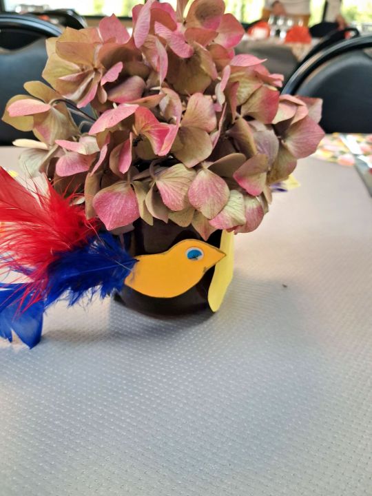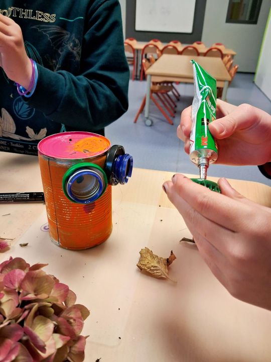 Dans une même démarche, d'éco-citoyen, ils ont créé les centres de tables à base de matières, de produits recyclables trouvés lors de leur activité " éco-gestes pour ma planète " ♻️.