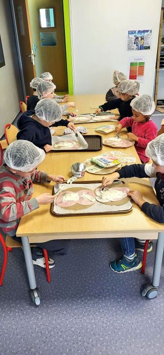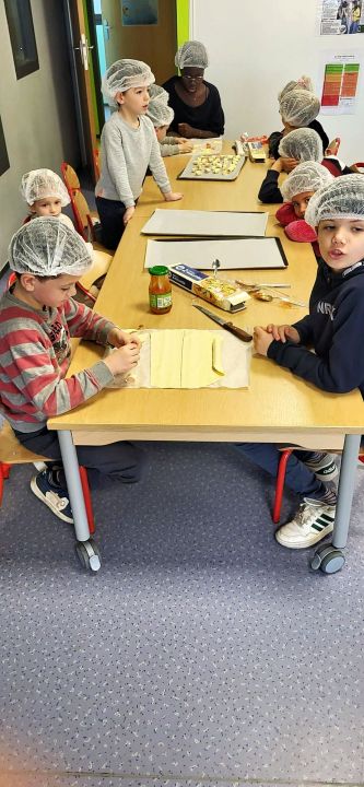 Pourquoi ne pas commencer la journée par l'apéritif ? Roulés de saucisses et de galettes au jambon et au fromage frais en préparatifs !