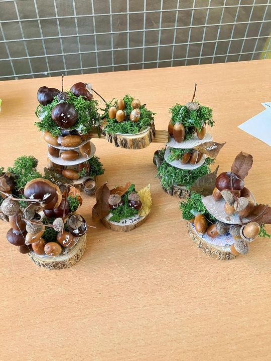 Que de belles réalisations ! Deux frères et sœurs, un mariage d’insecte, des maisons pour farfadets, un champignon 🍄, des hôtels à insectes, etc.