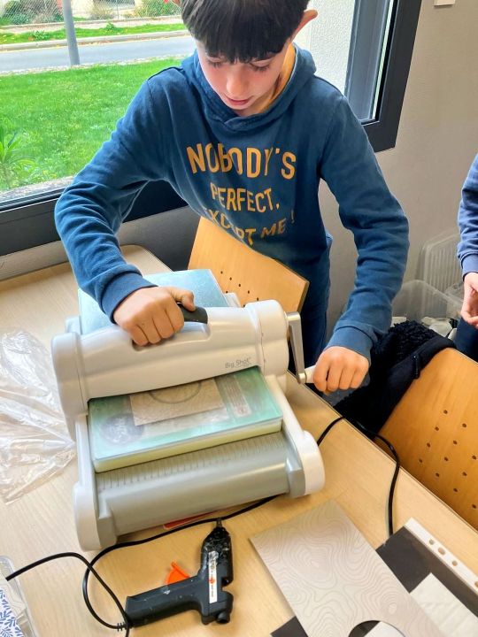 Ils ont appris à utiliser le pistolet à colle et la big shot (machine de découpe de papier à manivelle) !