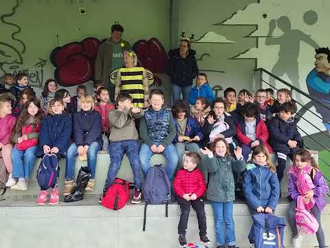 Ce matin...maya l'abeille est venue nous retrouver au centre de loisirs, elle nous a demandé de venir la rejoindre au terrain de foot pour faire une chasse au trésor....